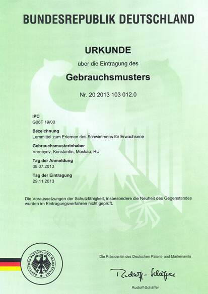 Методика обучения плаванию защищена патентом Германии (Nr. 20 2013 103 012.0)